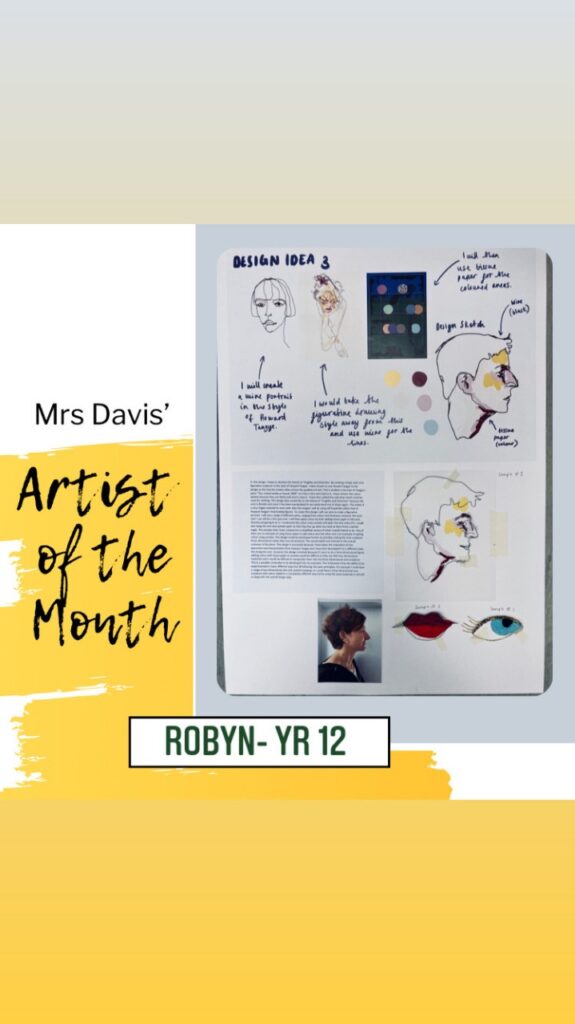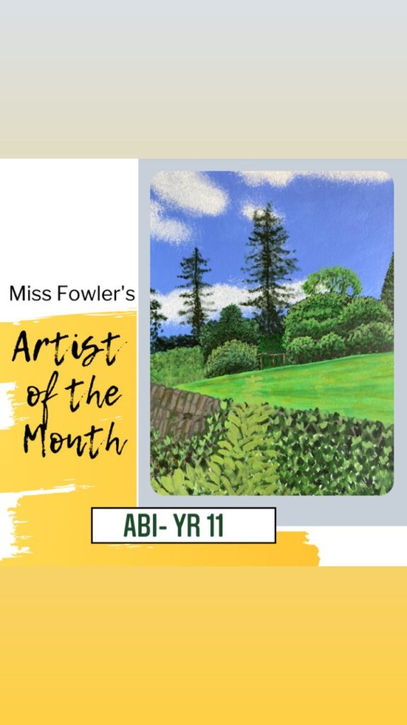 Each month your art teachers will nominate one or more QEGS Artist of the Month! We are lucky enough to teach so many talented, creative students with a broad range of skills- from budding photographers to fashion designers, painters, illustrators, digital artists, sculptors and much more. We believe your work should be celebrated– after all, many of you will go on to shape the future of the creative industries!