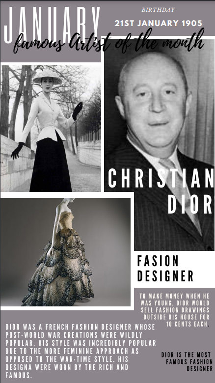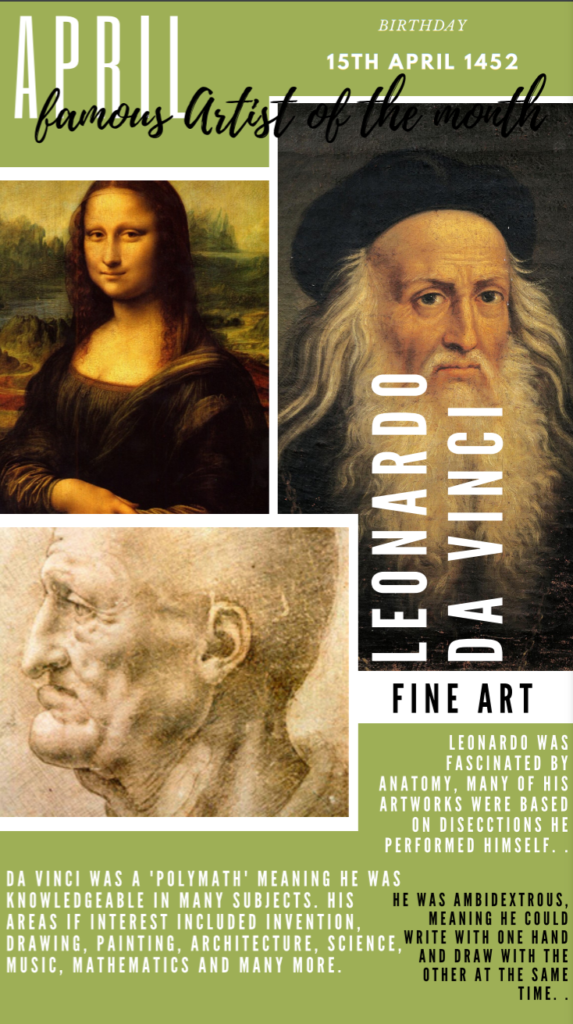 We will also be sharing our ‘Famous Artist of the Month‘ who’s birthday happens to fall in each month. You will be able to read interesting facts about each artist & find out more about their work.