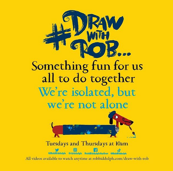 Childrens Illustrator Rob Biddulph invites you to ‘Draw with Rob’ every Tuesday and Thursday at 10am. Follow the tutorials and learn how to draw different characters that feature in Rob’s well known books.