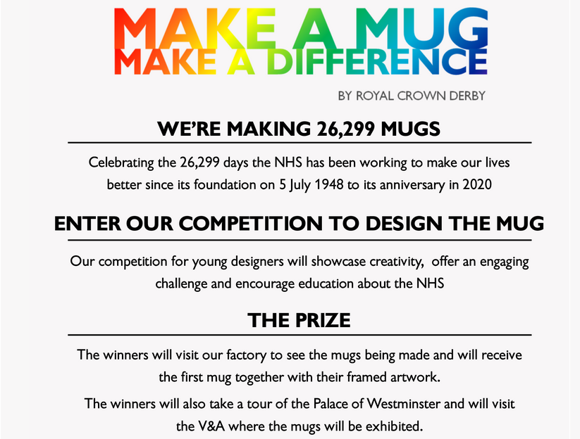This competition for young designers will showcase creativity, offer an engaging challenge and encourage education about the NHS. The competition asks you to design a mug that celebrates the NHS.