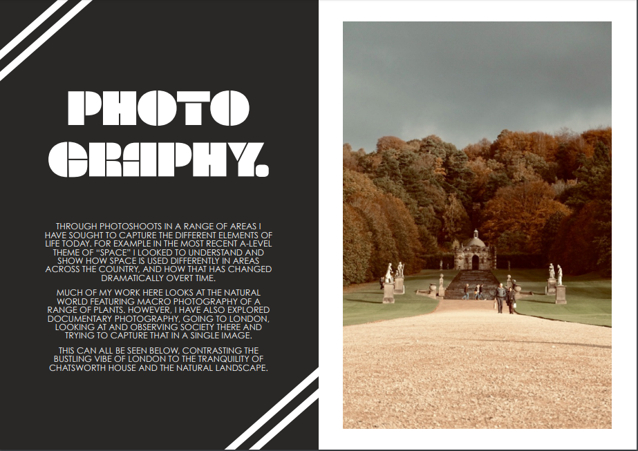 I enjoy generating creative ideas through a brief, challenging convention, and taking risks by experimenting with different mediums. For me, awareness of the world around us, being innovative and creatively aware are essential to accomplishing good creative design. Since discovering my interest and enthusiasm for graphic design, my knowledge about designers have inspired me to become more artistically agile. I want to communicate my work through type and imagery of different ways. I find it interesting how graphic design is the process of visual communication and problem-solving through the use of typography, photography and illustration whereby these techniques are used synonymously within my work. I am constantly considering the audience and how they will view my work. I have the power to change how a viewer sees the world, forcing them to see it how I want them too. I will be going to study Graphic and communication Design where I can’t wait to combine the use of these techniques further and convey a meaning within my work.